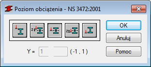 Można wybrać jedną z kilku ikon odpowiadających przypadkom obciążeniowym w przekroju belki na poziomach od górnej krawędzi do dolnej krawędzi belki. Informacje na temat sposobu obciążenia są wykorzystywane przy obliczaniu wartości współczynnika zwichrzeniowego.
