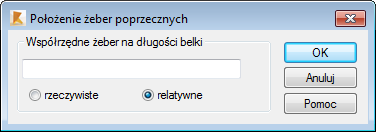 - Wprowadź współrzędne żeber poprzecznych na długości belki i określ, czy współrzędne są rzeczywiste czy względne do długości belki.