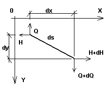 Rozpatrzymy wiotkie cięgno o małym zwisie (tzn. takie dla którego kąt między styczną w dowolnym punkcie cięgna i prostą łączącą jego końce jest mały), które zostało obciążone dowolnie rozłożonym obciążeniem w jego płaszczyźnie. Rozważmy nieskończenie mały elementu w tym cięgnie, który jest opisany w początkowym etapie (pierwszy etap – montaż) przez obciążenie q0, temperaturę T0 i naprężenie H0; długość tego elementu jest równa dso (Rys. 1a). Po przyłożeniu obciążenia (drugi, końcowy etap z obciążeniem q, temperaturą T i naprężeniem H), długość podstawowego przekroju cięgna jest równa ds (Rys.1b). Obydwa etapy razem z obciążeniami w obu płaszczyznach (xy i xz) przedstawiono również na rysunku 2.