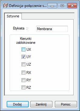 Definicja nowego połączenia sztywnego polega na podaniu etykiety oraz wyborze zablokowanych kierunków w połączeniu sztywnym:
