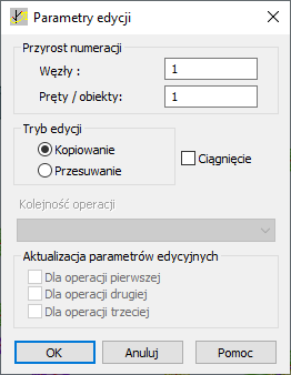 Kopiowanie — wybranie tej opcji powoduje, że w wyniku edycji dowolnego węzła, pręta lub obiektu powstaje nowy węzeł, pręt lub obiekt (pierwotne obiekty nie ulegają zmianie).