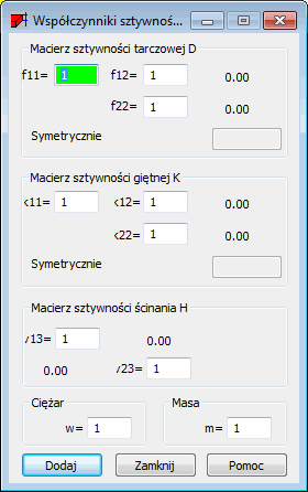 Współczynniki sztywności, ciężaru i masy