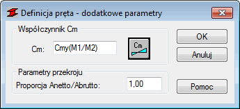 Opcja służy do określenia dodatkowych parametrów normowych typu pręta stalowego. Jest dostępna po naciśnięciu przycisku Więcej znajdującego się w oknie dialogowym Definicja pręta — parametry.