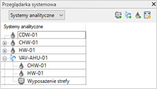 Dodaj systemy wentylacyjne, pętle wody i wyposażenie strefy, a następnie zdefiniuj strefy. Dodawanie systemów analitycznych i definiowanie stref-systemów |