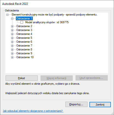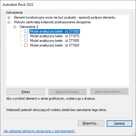 - Przejrzyj ostrzeżenia i wprowadź stosowne zmiany do projektu.