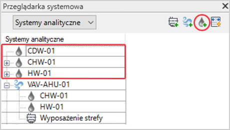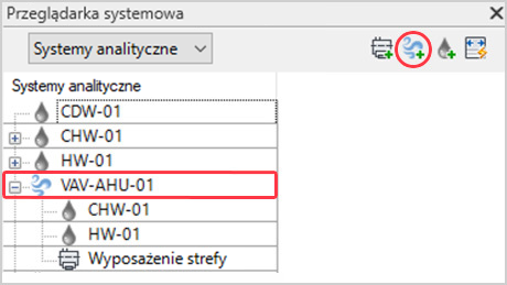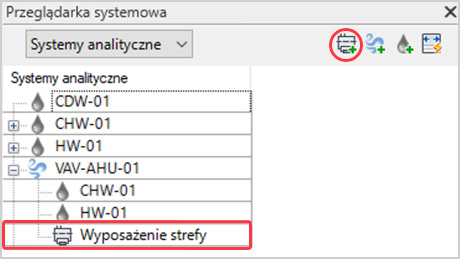 W przeglądarce systemowej wyświetlana jest hierarchia systemów analitycznych i wyposażenia strefy.