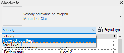 - Na liście Wybór typu wybierz typ schodów, który zostanie utworzony. Typ można zmienić później, w razie potrzeby.