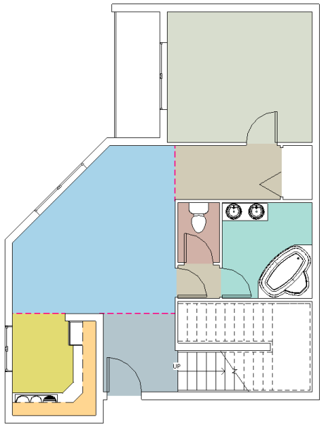 Za pomocą narzędzia Linia separacji pomieszczeń można dodawać i dostosowywać obwiednie pomieszczenia.