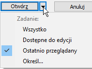 Aby otworzyć zadania w oknie dialogowym Otwórz