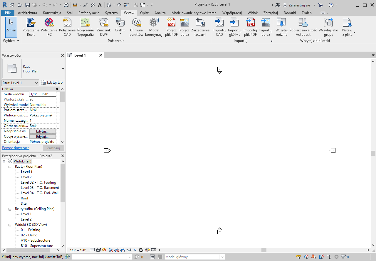 Na dole menu znajduje się lista otwartych widoków. Aktualnie wybrany widok w obszarze rysunku jest zaznaczony. |