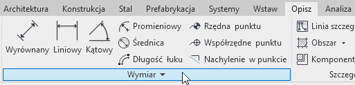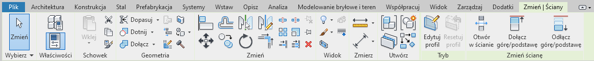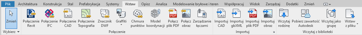 Wstążka jest wyświetlana podczas tworzenia lub otwierania pliku. Zawiera ona wszystkie narzędzia potrzebne do utworzenia projektu lub rodziny.