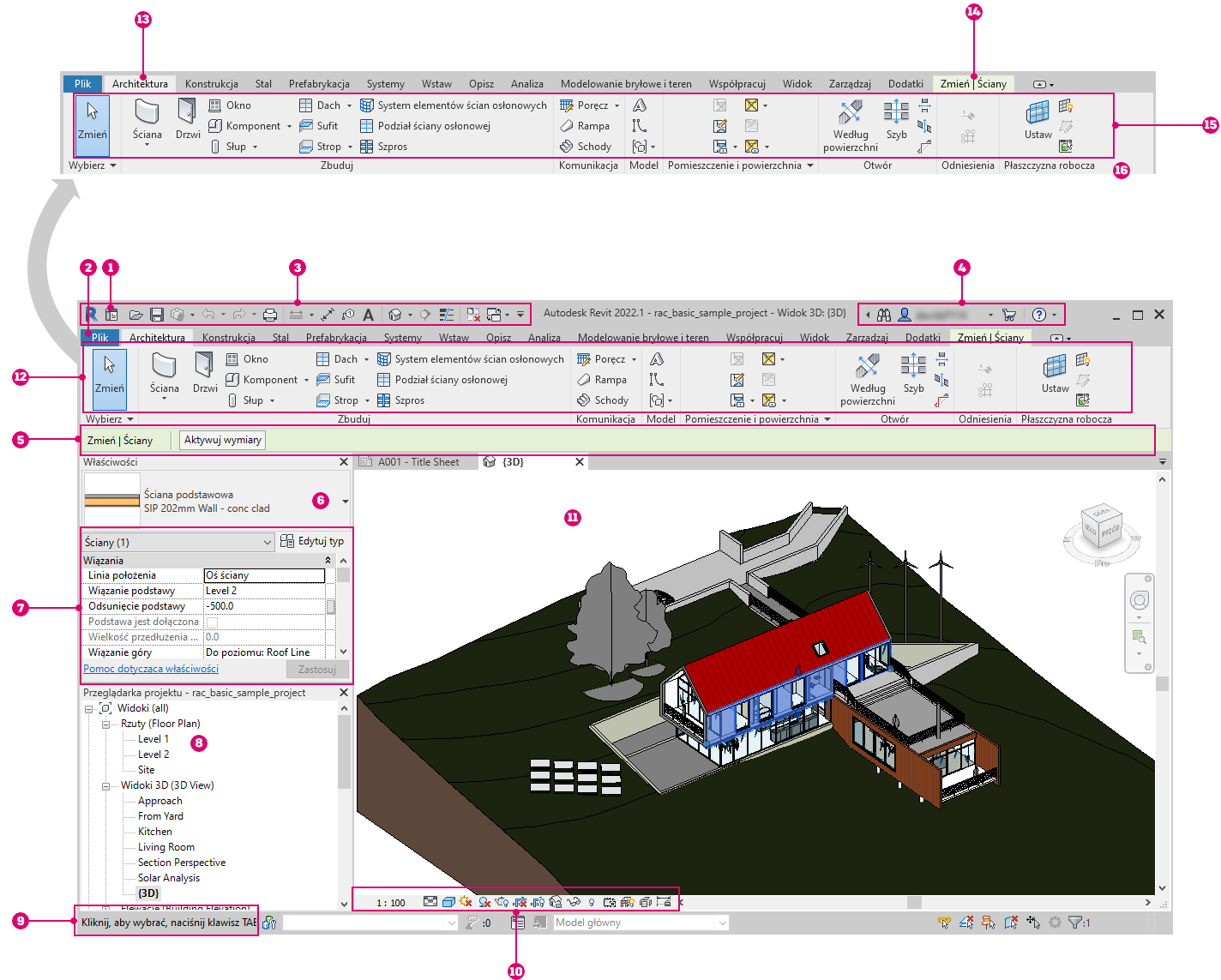 | 14 | Karta kontekstowa na wstążce, udostępniająca narzędzia odpowiednie do wybranego obiektu lub bieżącej operacji |