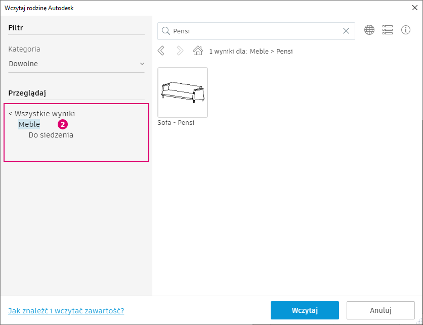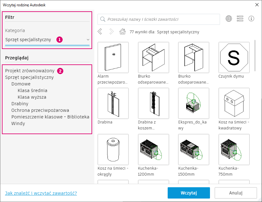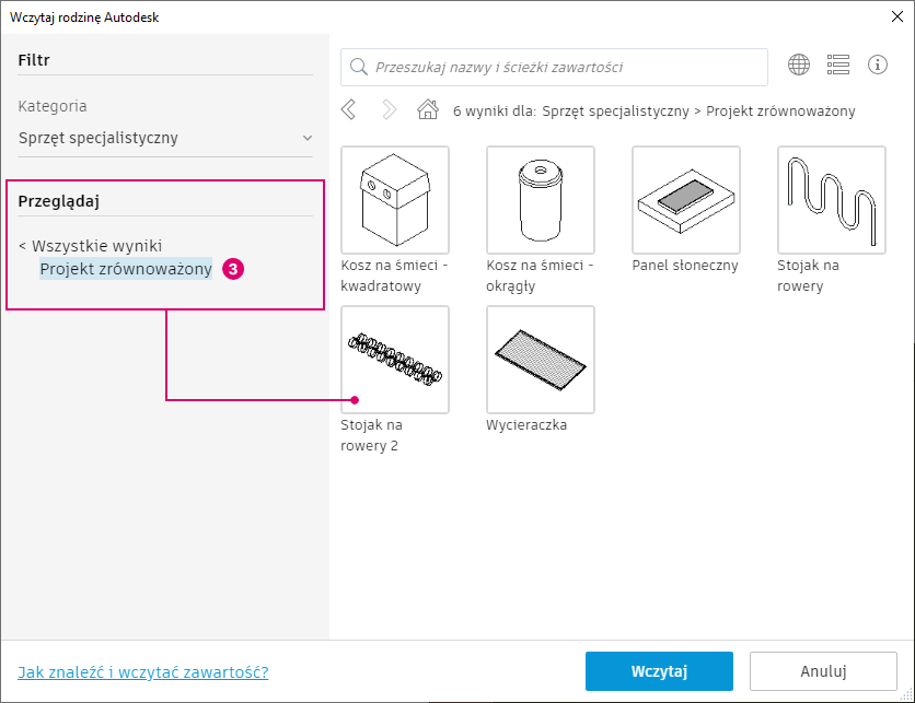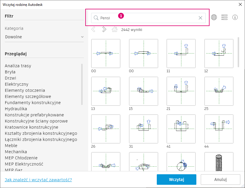 Wyszukaj i wczytaj przykładowe rodziny Autodesk z chmury.