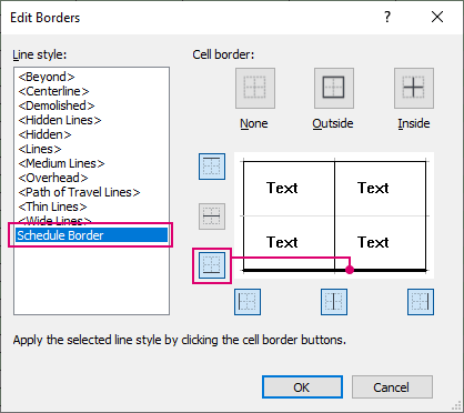 Obramowania na wstążce. W oknie dialogowym Edytuj obramowanie wybierz styl linii i kliknij przycisk położenia, w którym ma zostać zastosowany styl linii. W tym przykładzie tylko dolnemu obramowaniu zostaje przypisany styl szerszej linii.