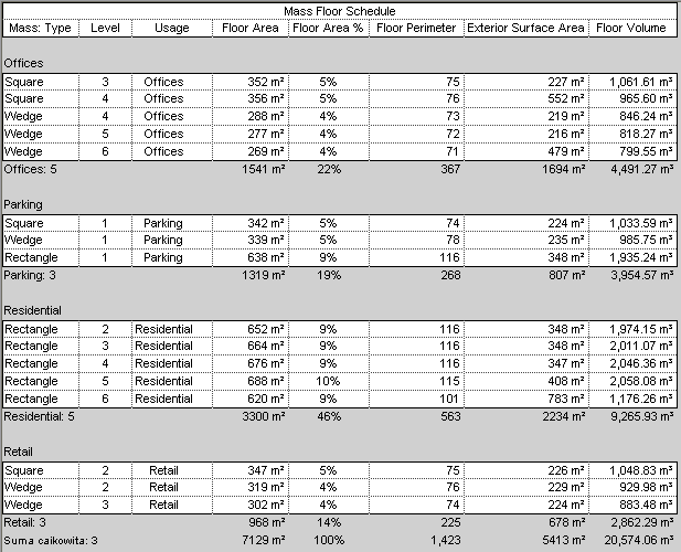 Utwórz zestawienia zakresów kondygnacji w modelu, aby zrozumieć, jak model koncepcyjny spełnia wymagania projektowe.
