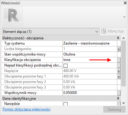 - Na palecie Właściwości kliknij przycisk znajdujący się na prawo od wartości klasyfikacji obciążenia.