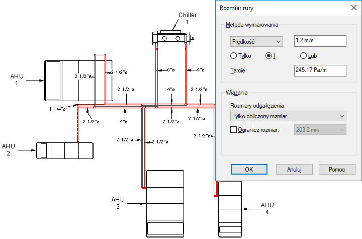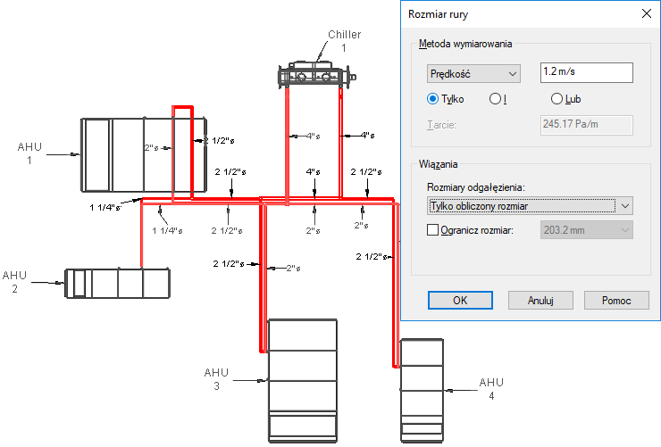 Następujące obrazy pokazują wyniki różnych metod wymiarowania systemu wodociągowego.