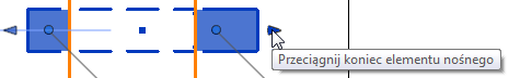 Przeciągnij kontrolkę końca elementu nośnego, aby dopasować długość elementu nośnego do pręta. Podczas przeciągania kontrolki naciśnij klawisz Shift, aby związać kierunek ruchu.
