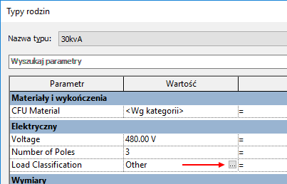 Typ klasyfikacji obciążenia oświetleniem został przypisany do elementu LP-3 złącza w Edytorze rodzin. Zobacz temat Określanie klasyfikacji obciążenia dla złącza elektrycznego.