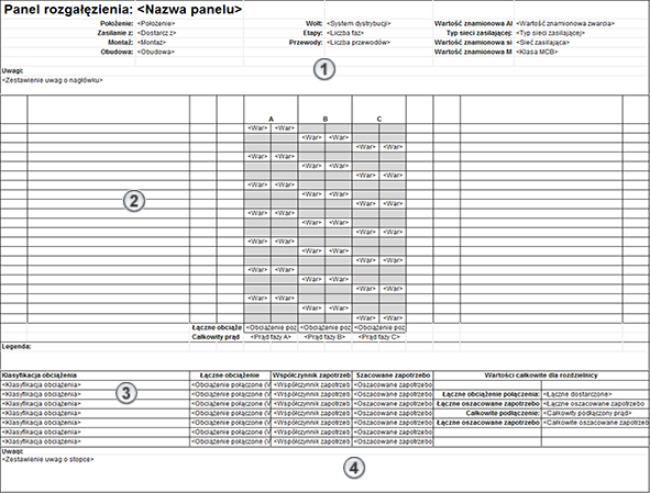 W oparciu o określony współczynnik zapotrzebowania (metoda obliczeń oświetlenia) i obciążenia z połączonych obwodów, zestawienie rozdzielnicy dla LP-3 pokazuje, jak pokazano na rysunku. Zestawienia rozdzielnic są wyświetlane w następujących sekcjach:
