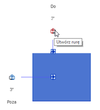 Dodawanie z poziomu ikony złącza: wybierz ikonę złącza wyświetlaną na rodzinie osprzętu lub sprzętu, aby dodać rurę z typem systemu przypisanym do tej samej klasyfikacji systemu co złącze. Ikony różnią się w zależności od klasyfikacji systemu złącza. Po dodaniu rur można zmienić typ systemu na inny, przypisany do tej samej klasyfikacji systemu. Tej metody można też używać w widoku elewacji lub przekroju.