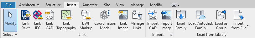 Wstążka jest wyświetlana podczas tworzenia lub otwierania pliku. Zawiera ona wszystkie narzędzia potrzebne do utworzenia projektu lub rodziny.