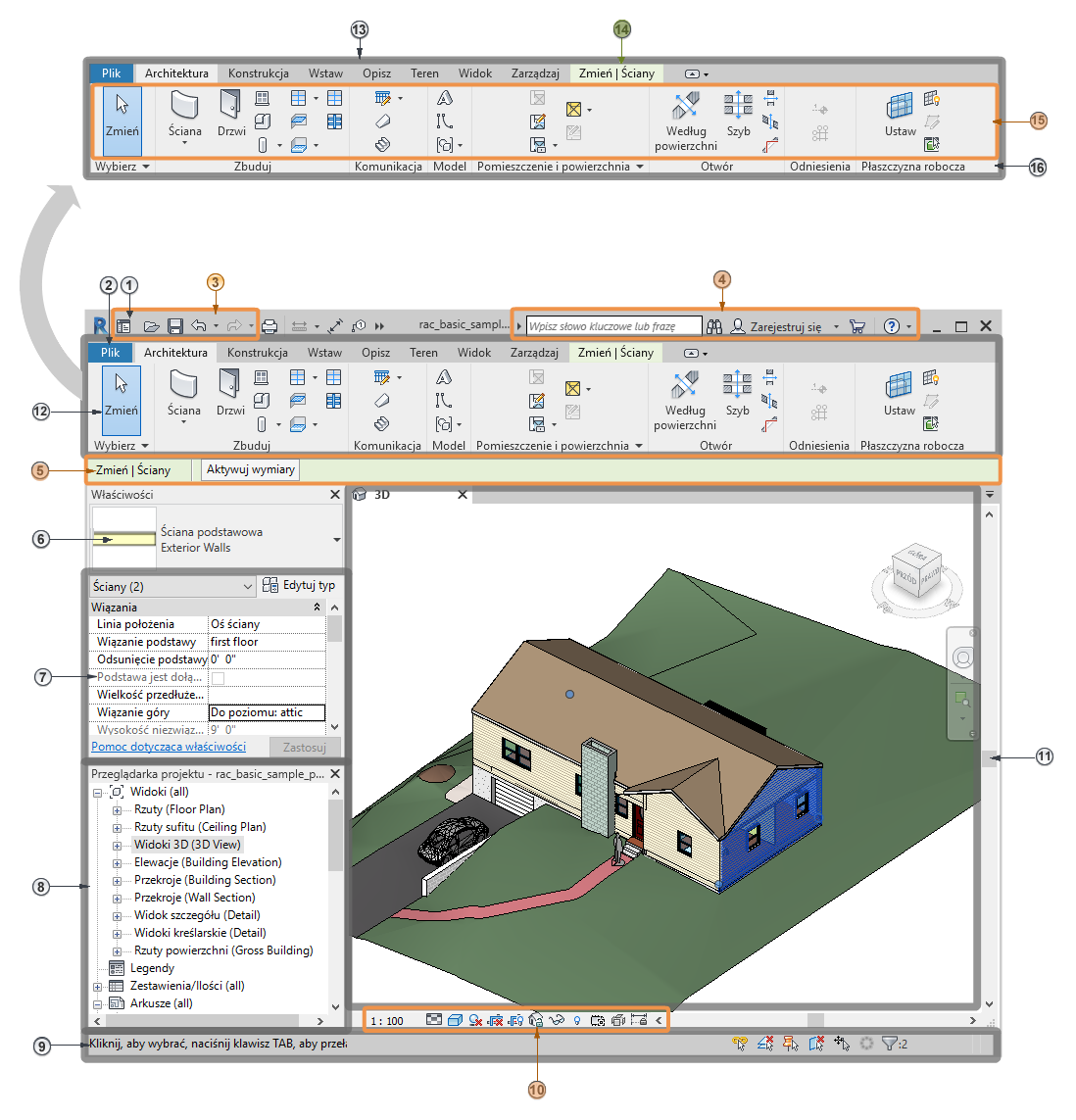 | 15 | Narzędzia na bieżącej karcie wstążki |