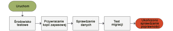 Zastosuj szczegółowo opisane w tym dokumencie procesy w odniesieniu do środowiska testowego. Użycie środowiska testowego stanowi bezpieczny sposób zapoznania się z procesem migracji i wykrycia nieoczekiwanych przeszkód. Mimo że ten proces zajmuje pewien czas, na dłuższą metę stanowi jego oszczędność i pozwala zmniejszyć ilość problemów, unikając ich wpływu na środowisko produkcyjne.