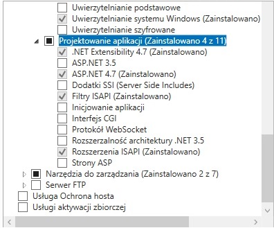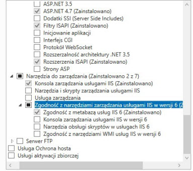 Należy wczytać składnik Internetowe usługi informacyjne w systemie Windows Server 2016 i 2019.