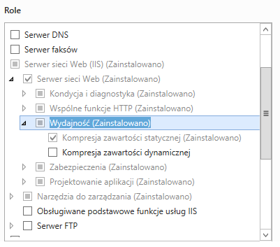 - Wybierz z lewej strony opcję Role serwera i na liście Role zaznacz pole wyboru Serwer sieci Web (IIS).