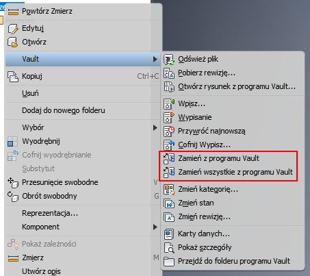 Korzystając z nowych poleceń „Zamień z programu Vault” i „Zamień wszystkie z programu Vault” można przejść bezpośrednio do programu Vault, wyszukać wymagane komponenty i przeprowadzić zamianę.