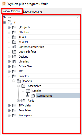 Dzięki tej aktualizacji w oknie dialogowym Otwórz z programu Vault dostępny jest również widok folderu, który ułatwia nawigowanie do plików.