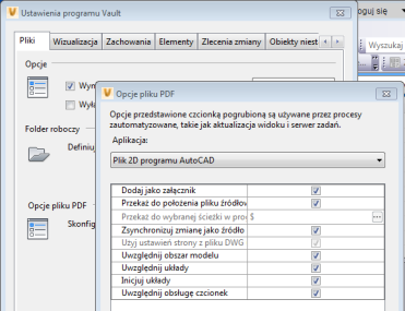 Program Vault 2018 umożliwia automatyczne publikowanie plików PDF 2D na podstawie plików CAD i zarządzanie nimi jako zwolnioną dokumentacją w ramach procesu zwalniania projektu.