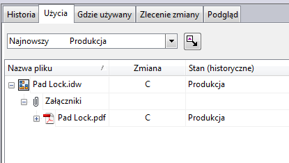 W programie Vault 2018 pliki PDF utworzone na potrzeby kontroli dokumentów są automatycznie dołączane do towarzyszących im plików projektu. W rezultacie projektanci widzą wszystkie dołączone pliki PDF na karcie Użycia w oknie programu Vault Client.