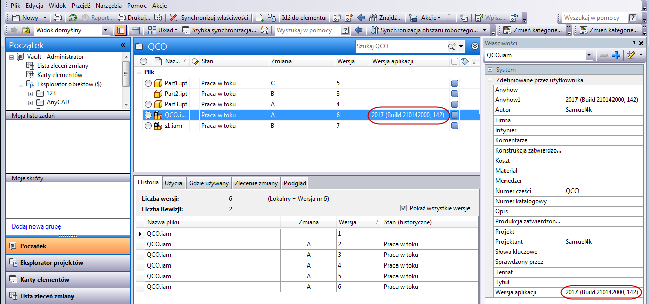 Właściwość Wersja aplikacji dotyczy obecnie tylko plików programu Inventor.