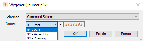 Podczas definiowania schematu numerowania można utworzyć opis dla wstępnie zdefiniowanej listy. Te opisy schematów numerowania są obecnie wyświetlane podczas tworzenia i zapisywania nowego pliku w programie Inventor lub AutoCAD.