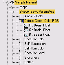 A cor RGB divide o controlador de R, G e B componentes em três diferentes rastreia. Você pode usar este controlador com cor rastreia. Por padrão, cada rastreamento é atribuído um Bezier flutuar controlador. O controlador de laminado Bezier é um único parâmetro controlador.