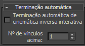 Os controles de Encerramento automático atribuem terminadores temporariamente a um número específico de vínculos na cadeia hierárquica a partir do objeto selecionado. Isto apenas funciona com Cinemática inversa interativa; não funciona com Cinemática inversa aplicada ou com Solventes de cinemática inversa.