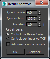 Também é possível utilizar essa ferramenta para converter qualquer trilha de controlador em uma trilha simples com quadros-chave. É possível converter trilhas de Rotação em Euler ou TCB e retrair as trilhas de Posição e Escala em controladores Bezier ou Linear.