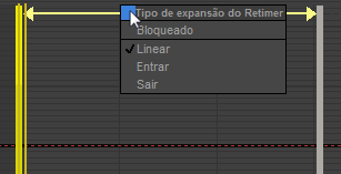 Um marcador Retime aparece na janela onde você clicou. Ele tem o formato de uma barra vertical amarela e tem a legenda "Arrastar para Retime."