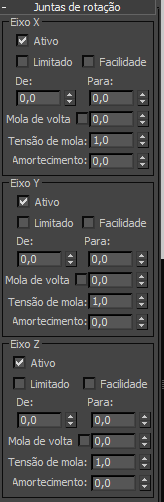 - Determinam os limites de rotação. Utilizados em conjunto com a função Limitado. Clicar nos indicadores De e Para roda o objeto até sua rotação-limite. Use isto para verificar os limites de rotação de um objeto.