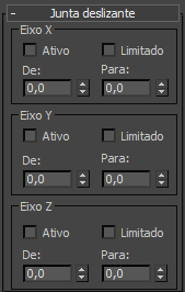 - Limita a faixa de movimento permitida em um eixo ativo. Utilizado em conjunto com os giradores De e Para. A maior parte das juntas tem uma faixa de movimento limitada ao longo de um eixo ativo. Por exemplo, um pistão somente desliza ao longo do comprimento do seu cilindro.