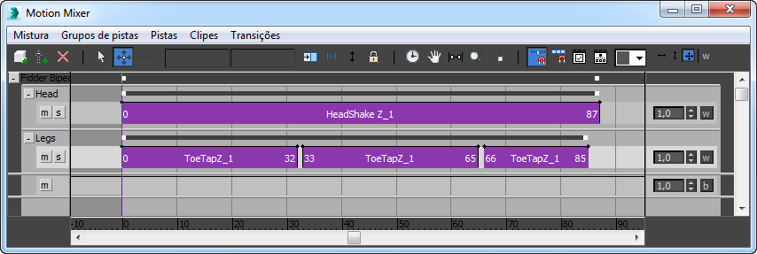 Linhas tracejadas aparecem em um clipe de flambagem de tempo no Mixer para indicar a velocidade de movimento em diferentes pontos no clipe.