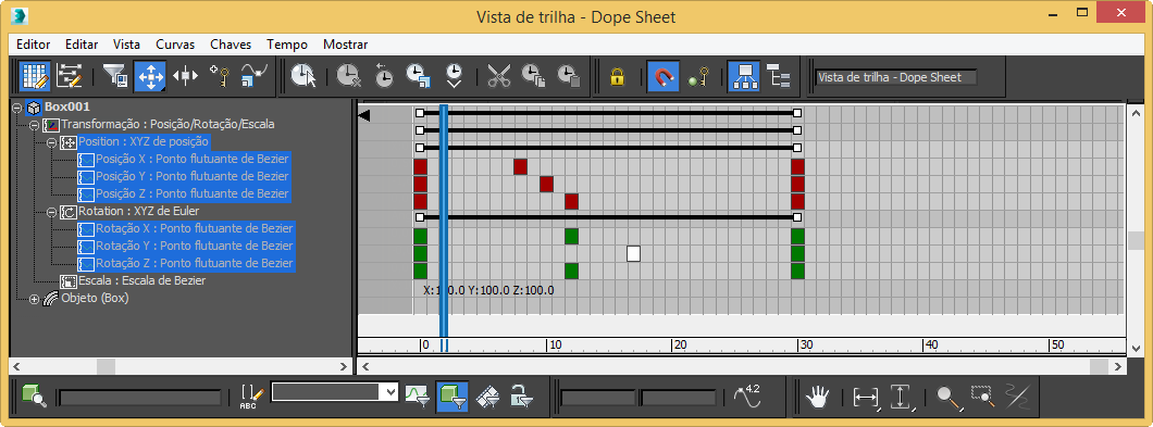 O Dope Sheet permite a seleção suave das chaves, o que é muito útil qué possível você trabalha com dados de captura de movimento, que têm chaves em todos os quadros.