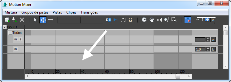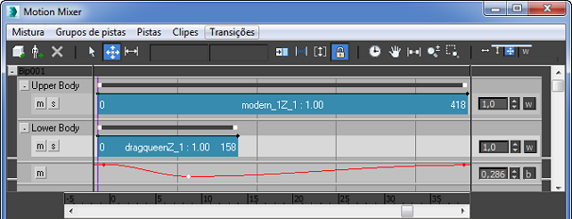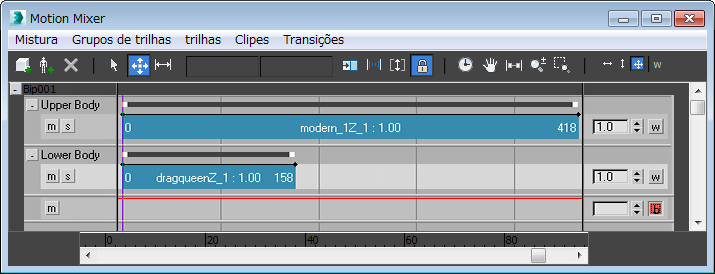 No Mixer, você pode controlar os graus de equilíbrio automático da compensação usando o rastreamento do equilíbrio. Um rastreamento do equilíbrio é criado automaticamente para cada Biped, enquanto é adicionado para o Mixer.