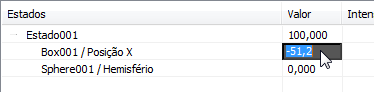 Conforme se manipula o objeto, o valor é atualizado imediatamente e o novo valor é exibido na lista de Estados. Se entradas orientadas em vários estados forem realçadas, os valores serão atualizados apenas para o primeiro deles.