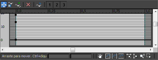 Os controles do gráfico são similares àqueles encontrados em outros desenhos no 3ds Max, como aimplementação e Saída do Editor de Material. A barra de ferramentas acima do gráfico oferece funções para mover e classificar os pontos no gráfico, bem como inserir novos (isto é, novos estados). As mesmas funções estão disponíveis ao clicar com o botão direito do mouse no gráfico, e se clicar sobre um gráfico de pontos, é possível definir para o Canto e dois diferentes tipos de Bezier. Se você selecionar um ponto Bezier, poderá reformatar a curva movendo suas alças. É possível arrastar uma região para selecionar vários pontos e, a seguir, editar de forma conjunta. Utilize a barra de ferramentas sob o gráfico para usar o modo panorâmico e zoom no gráfico.