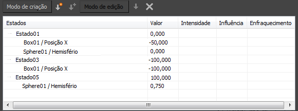 Se você realçar um nome orientado, poderá editar seu valor para o estado atual. Se realçar um nome de estado e clicar em Editar modo, poderá editar qualquer uma das trilhas orientadas. Para sair deste modo e testar os novos valores, clique novamente em Editar Modo.