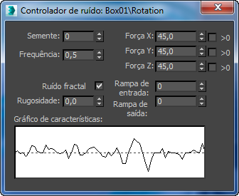 Atribua o menu Controlador, selecionar a trilha de rotação na janela de lista. 3ds Max abre a caixa de diálogo Controle de ruído.