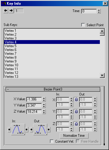 Mostra e permite ajustar a interpolação e posição. Consulte Controlador Bezier.